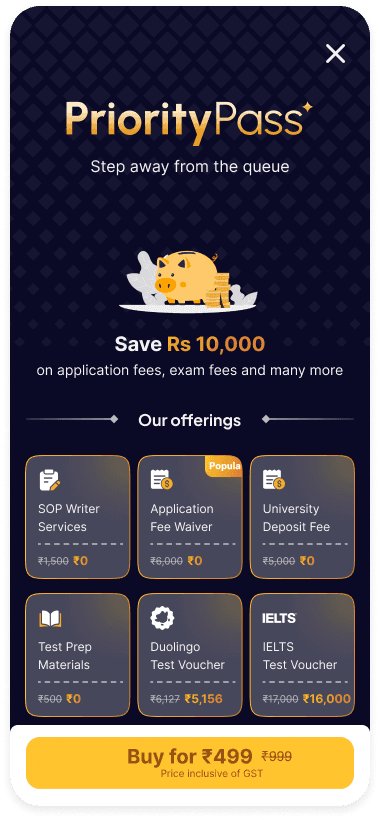 Priority Pass is a premium study-abroad plan offering faster access to top counsellors, exclusive offers and support